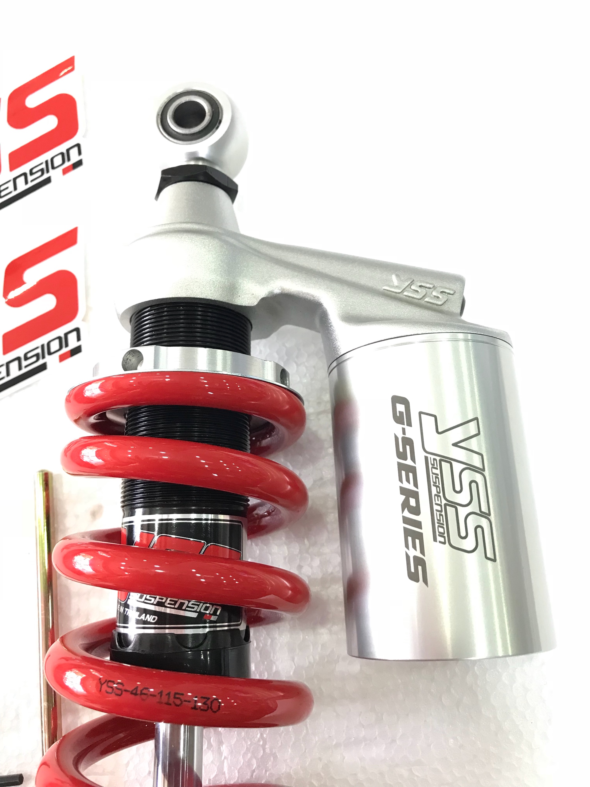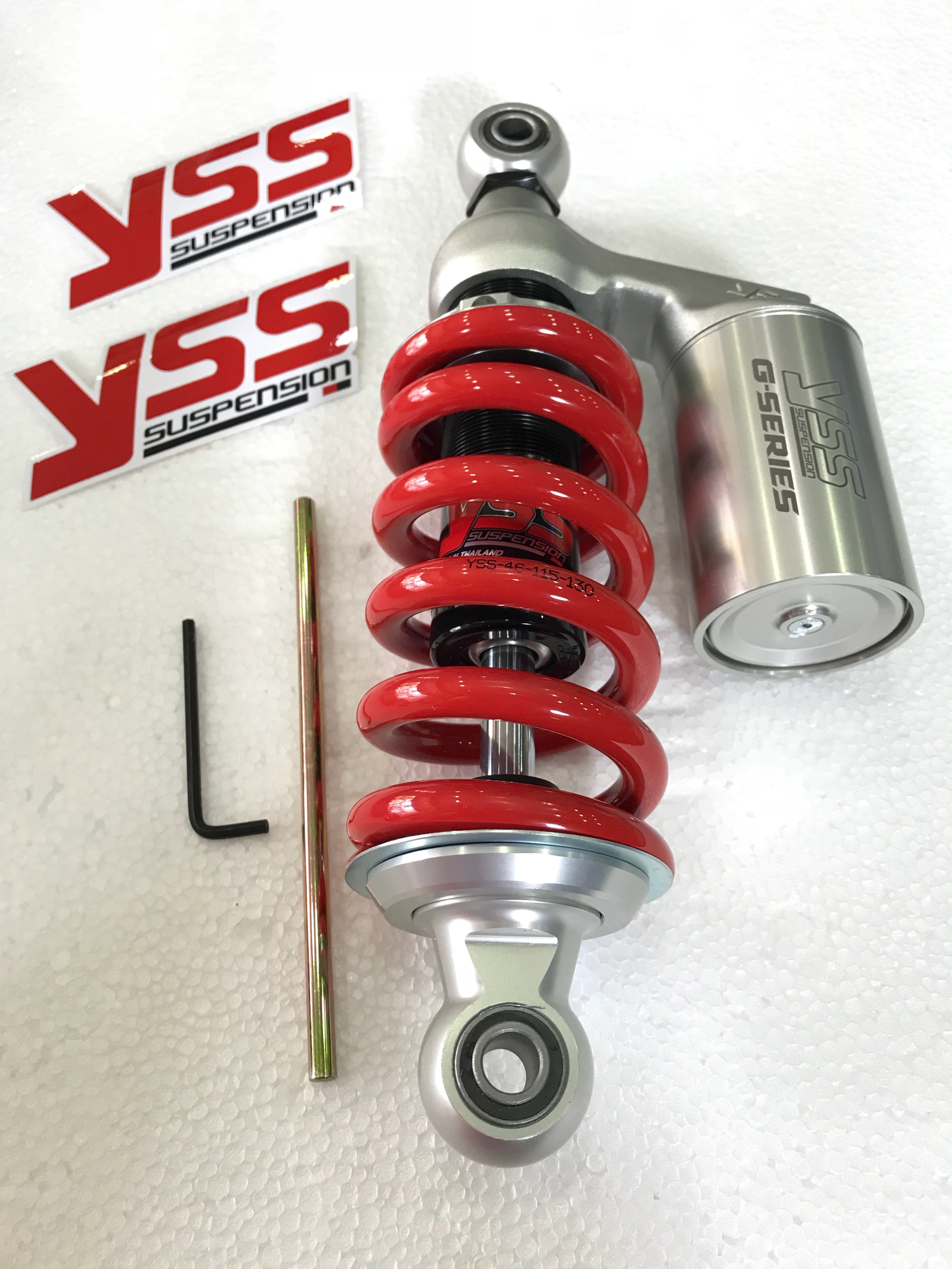 Kí hiệu G (Có bình dầu), dòng phuộc YSS loại này bao gồm bình dầu để hỗ trợ hoạt động êm ái hơn, có thêm chức năng T (Thread Spring Preload) là có khả năng điều chỉnh ép lò xo nặng nhẹ khi chở nặng hay nhẹ có thể điều chỉnh bằng tay.