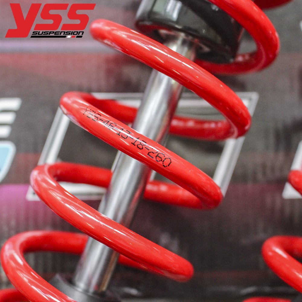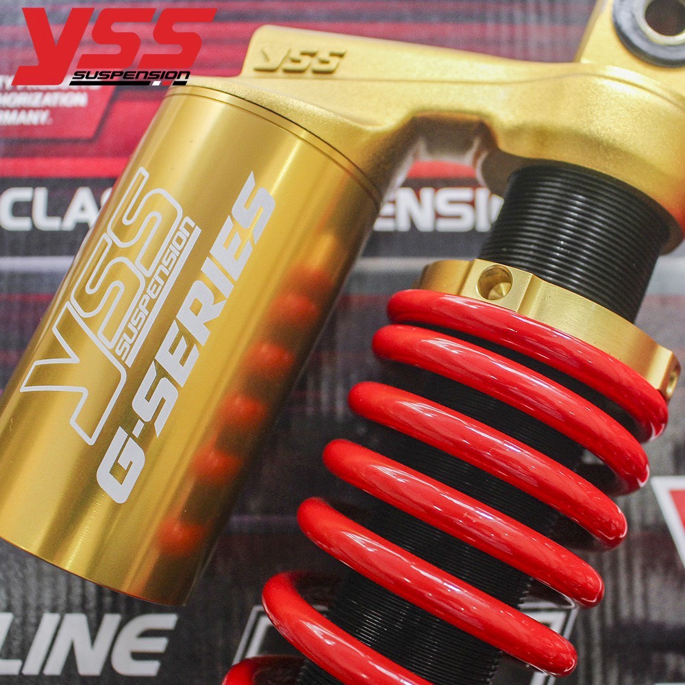 Phuộc YSS G-Series: G (Có bình dầu), dòng phuộc YSS loại này bao gồm bình dầu để hỗ trợ hoạt động êm ái hơn, có thêm chức năng T (Thread Spring Preload) là có khả năng điều chỉnh ép lò xo nặng nhẹ khi chở nặng hay nhẹ có thể điều chỉnh bằng tay.
